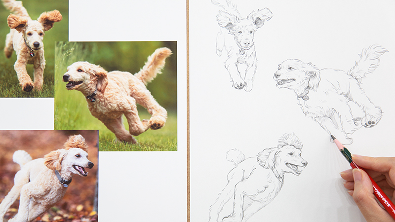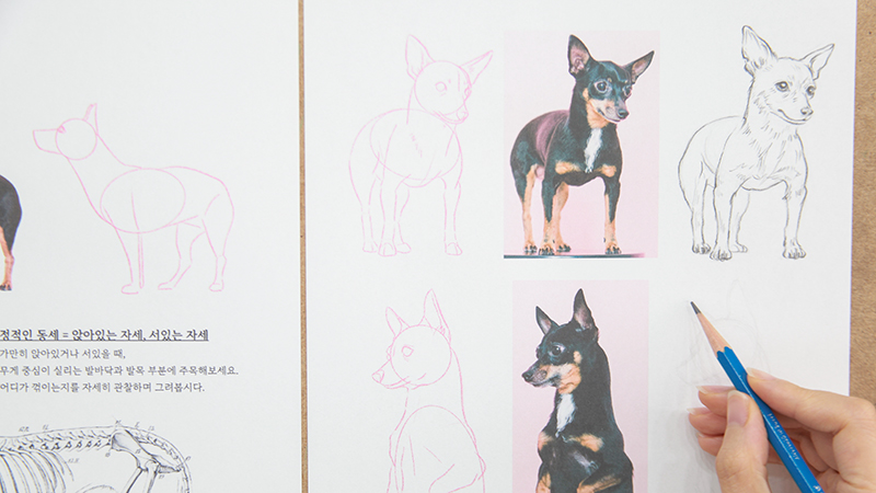 정적인 자세를 전체적으로 관찰하며 그리고, 다양한 견종별 비율을 비교해봅니다.