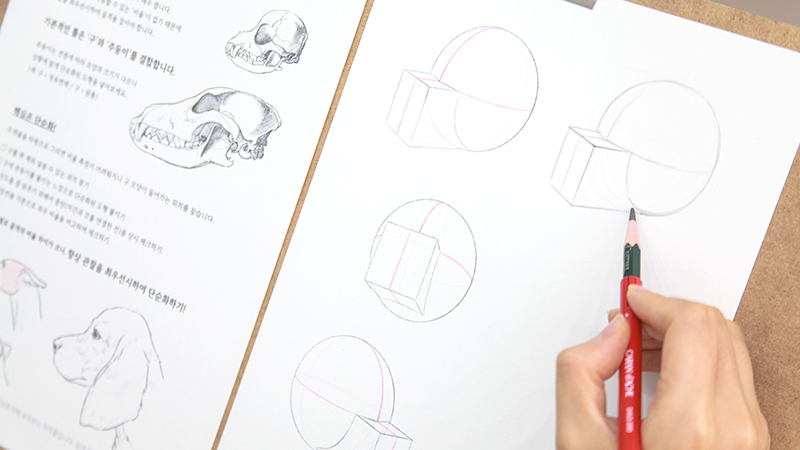 구를 그리며 반려견의 두상을 단순화하는 방법을 익힙니다.